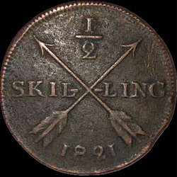 Karl XIV Johan. 1/2 Skilling 1821