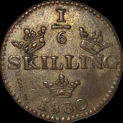 Karl XIV Johan. 1/6 Skilling 1830