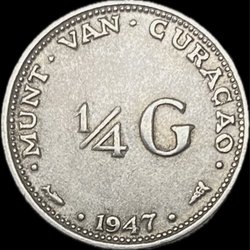 Wilhelmina. 1/4 Gulden 1947 Curaçao