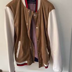 Bomberjacka i från Zara i brunt och vitt konstläder Stl S