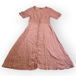 Gudrun Sjödén L Klänning Dam Linne Rosa Knappdetaljer Boho Stil 100% Bomull