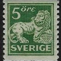 F 143Acxz** 5 öre Stående Lejon i Postfriskt ex. Facit: 80:-