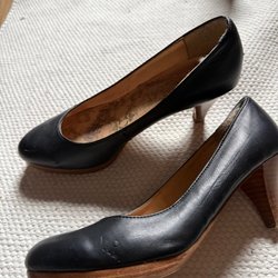 Svarta pumps med träklack