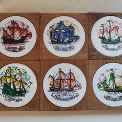 Sex glasbitar med skepp