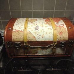 Dekorativ träkista med världskarta