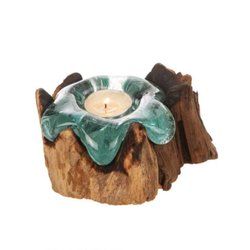 Unik handblåst ljuslykta på trärot