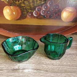 Gräddkanna och sockerskål i grönt glas från Nybro glasbruk
