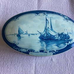 En fin plåtburk med skeppsmotiv.