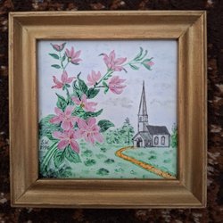 Vintage tavla med broderat motiv