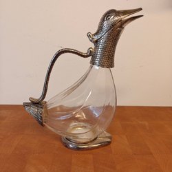 Karaff-Vinkaraff-Glas/Nysilver i form av en anka- VINTAGE