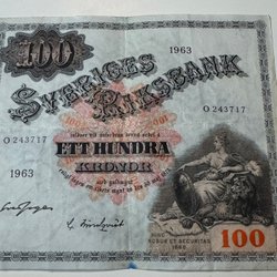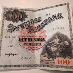 Svensk Hundrakronorssedel från 1963