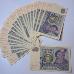 Samling av Fem Kronor Sedlar