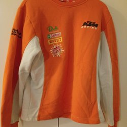 KTM orange, vit tröja, storlek L