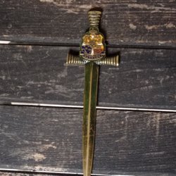 Gammal brevöppnare i brons med vapensköld 18 cm lång