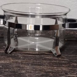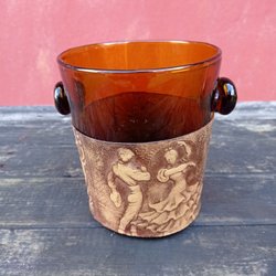 En gammal glasskål, 13 cm hög och 10 cm i diameter.