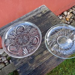 Serveringsbrickor i stål med teakträhandtag på 28 respektive 33 cm långa