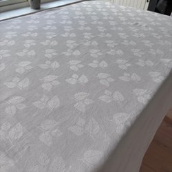 STOR! Vit damastduk med bladmönster/ björk.
