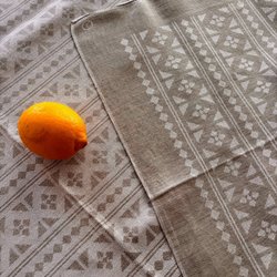Tampella/Finland. Linne bordsduk. Grå/beige.