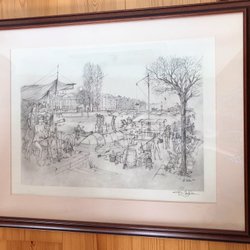 Teckning/litografi. Inrammad. Signerat .