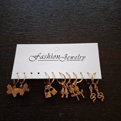 Set med guldiga örhängen med stenar 12 par