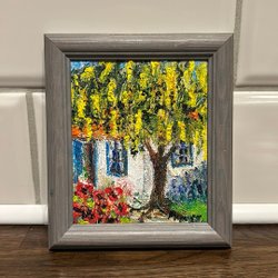 Oljemålning ”Gullregn träd” vid Gotlandshus Slite av Marianne Bos Maréng