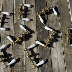 Dörrhandtag i mässing och trä