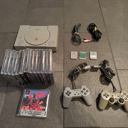 Playstation 1 med spil og tilbehør