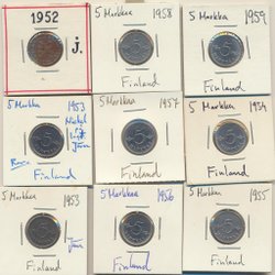 Collection of 5 Markkaa from Finland