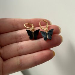fjärilsformade svarta örhängen, minimalistisk