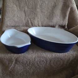 Ugnsformar 2 st vita/blåa i keramik, osignerade
