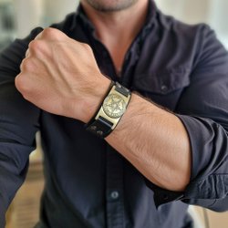 Svart Läderarmband med Vargmotiv