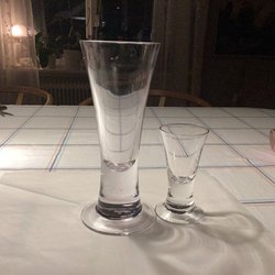 Ölglas och snapsglas av Erik Höglund. Finns 8 ölglas och 6 snapsglas.