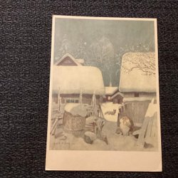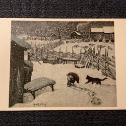 Tomte och katt ute i snön, Harald Wiberg