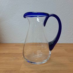 Kanna, glas, blå kant, Bergdala glasbruk.