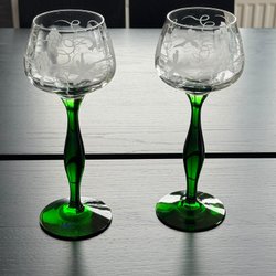 Kosta Sweden vinglas med grön fot, 2 st