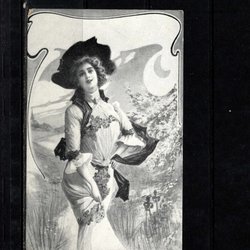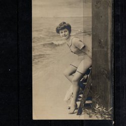 Kvinna i baddräkt stämplat 1906