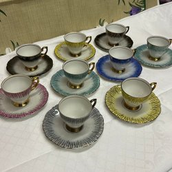 9 st Bavaria Moccakoppar med fat och gulddetaljer.