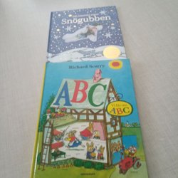 Två barnböcker: Snögubben av Raymond Briggs och Vi lär oss ABC av Richard Scarry
