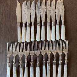 Silverpläterade bestick med pärlemorshandtag