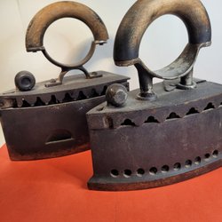 2 st äldre kolstrykjärn trä/gjutjärn