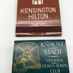 Liten tändsticksask från hotell Knaust och tändsticksplån från hotell Hilton