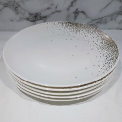5 st 20,5 cm Vita tallrikar med guldmönster, d'aventure collection