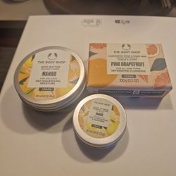 The Body Shop Set: Mango Body Butter, Lip Scrub & Pink Grapefruit Tvål