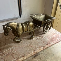 Häst med vagn i mässing