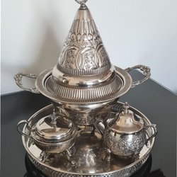 Kaffeservis i silverfärgad metall
