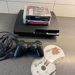 Playstation 3 med spel och handkontroll