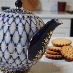 Lomonosov LFZ "Cobalt Net" Porslin Tekanna