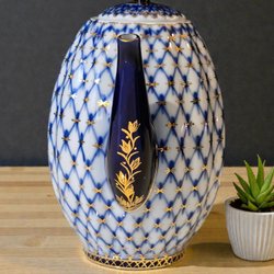 Lomonosov LFZ "Cobalt Net" Coffee pot, with defect