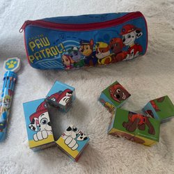 Paw Patrol pennfodral, flerfärgspenna och klossar