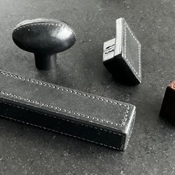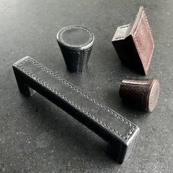 4 st. Handgjutna Möbelknoppar och handtag i läderimitation.
